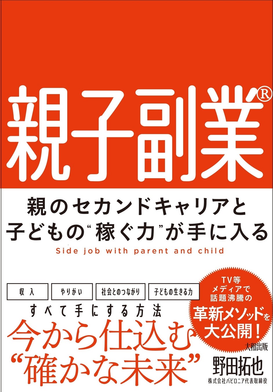 株式会社バビロニア(本社:東京都三鷹市)代表取締役 野田拓也は初の著書『親子副業® 親のセカンドキャリアと子どもの”稼ぐ力”が手に入る』を2023年11月16日に大和出版より発売いたします。