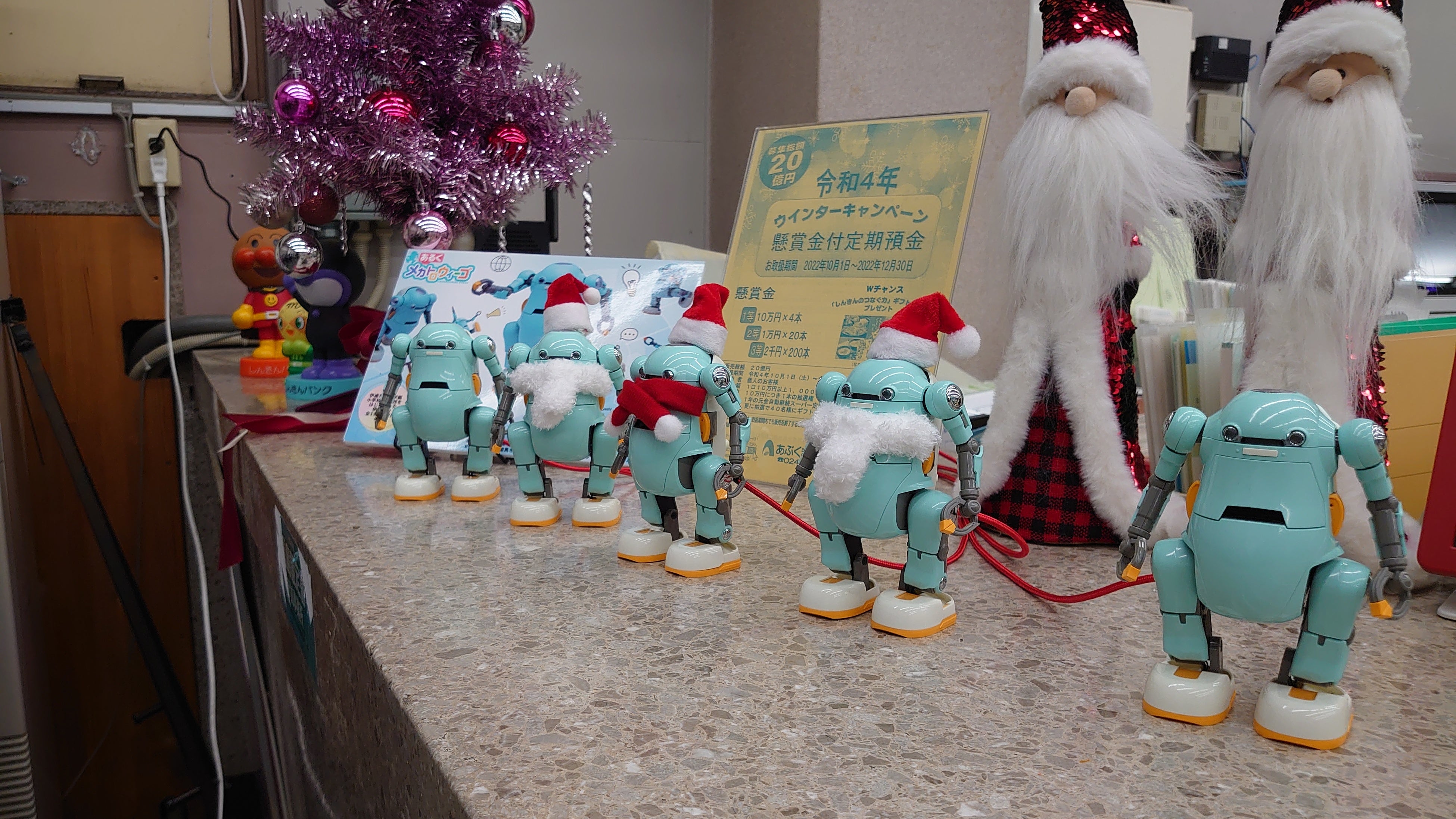あぶくま信用金庫は、地域密着型金融の取り組みを強化し、地域経済の活性化に強く取り組まれている金融機関です。この度は、その本店(南相馬市)および東支店(同市)の窓口にそれぞれ5台、合計10台のウィーゴを設置。決められた時間になると、その10台が一斉にダンスをして定時をお知らせします。窓口の顔として来客者の方々の癒しとなることを目指し、12月23日(金)から運用を開始いたしました。