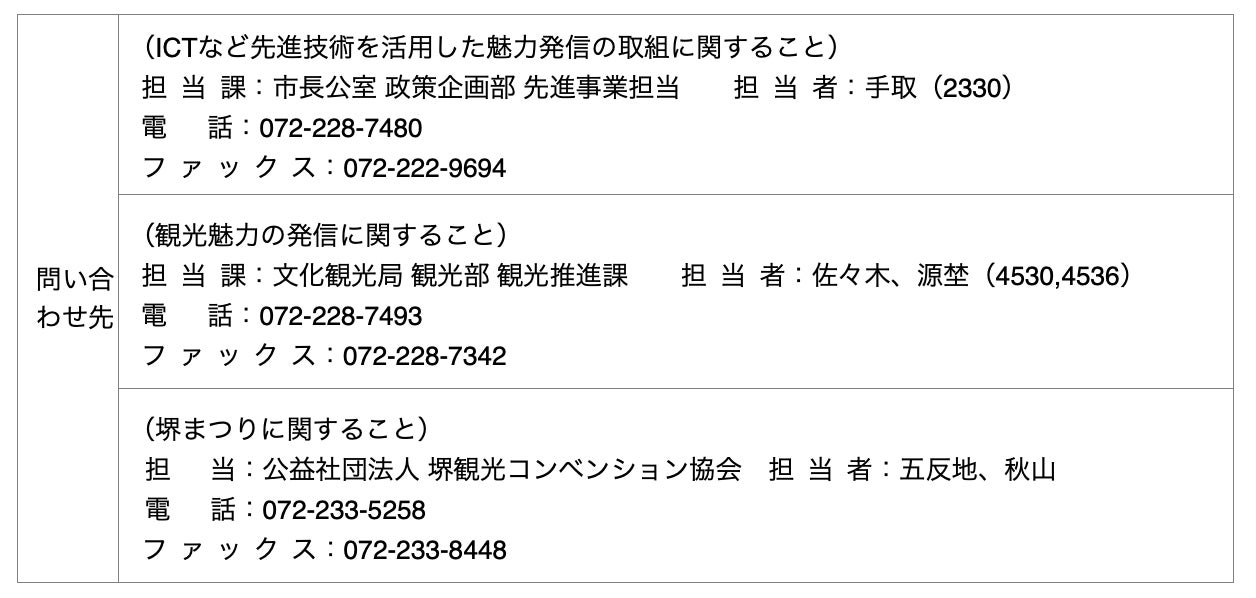主な事業:メタバース、WEB3.0を通じて堺市の新しい価値を創造することを目的とし、「日本人の心と歴史に、革新的な技術を取り入れることで次世代に誇れる若者を輩出する」を基本理念とする。「メタバースを活用した新しいまちづくりと地域の魅力発信」「次世代の若者の育成による街のDX化」「WEB3.0を活用した新しい経済圏の創出」を基本 方針とする。