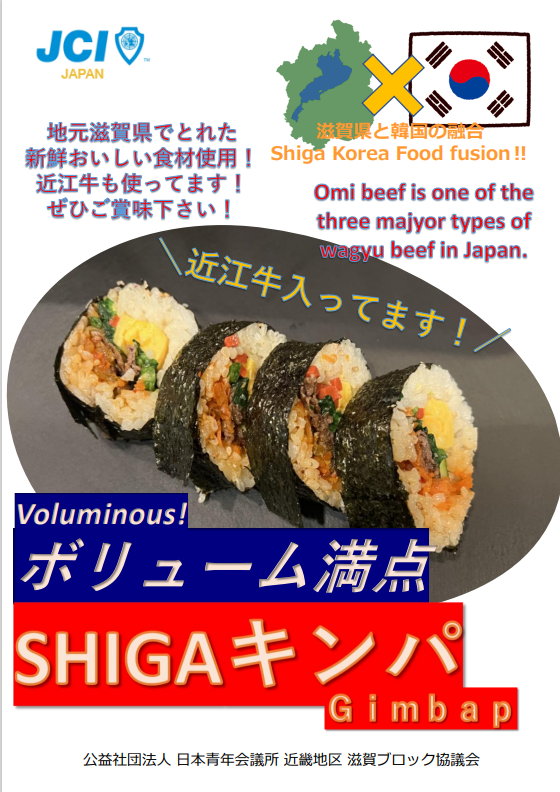 魅力ある滋賀を発信するために、滋賀県産の近江牛や野菜を韓国料理のキンパにして提供します。