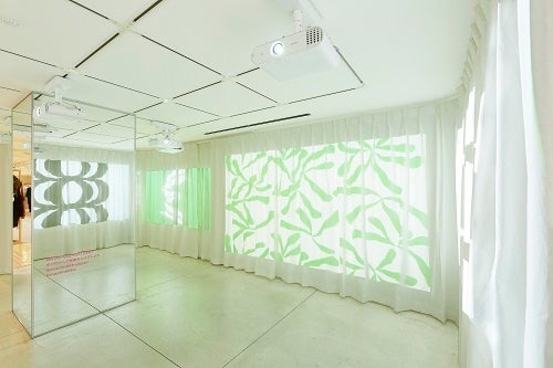 マリメッコ ボタニカルガーデンでは、デジタルプロジェクション、そしてビジュアルアーティスト カトゥリ・ティッカネンが手がけたドリーミーなアニメーションを用いて、有機的なモチーフを投影。花びらが1枚ずつ咲いていき、植物が成長していく姿を表現しました。会場内に流れるのはLicaxxxによるサウンドスケープ。マリメッコの「プリント作りのアート」の魅力を余すところなく、新たな切り口から体験できるサウンドとなっています。