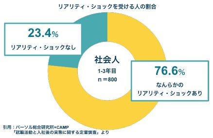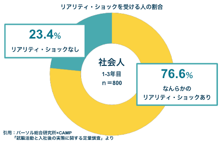 パーソル総合研究所の調査によると、入社3年目以内にリアリティ・ショックを感じている割合は76.6%と、多くのZ世代(※1)が感じているため、入社後はそのギャップを早期に埋め、退職防止となる対策が必要になります。