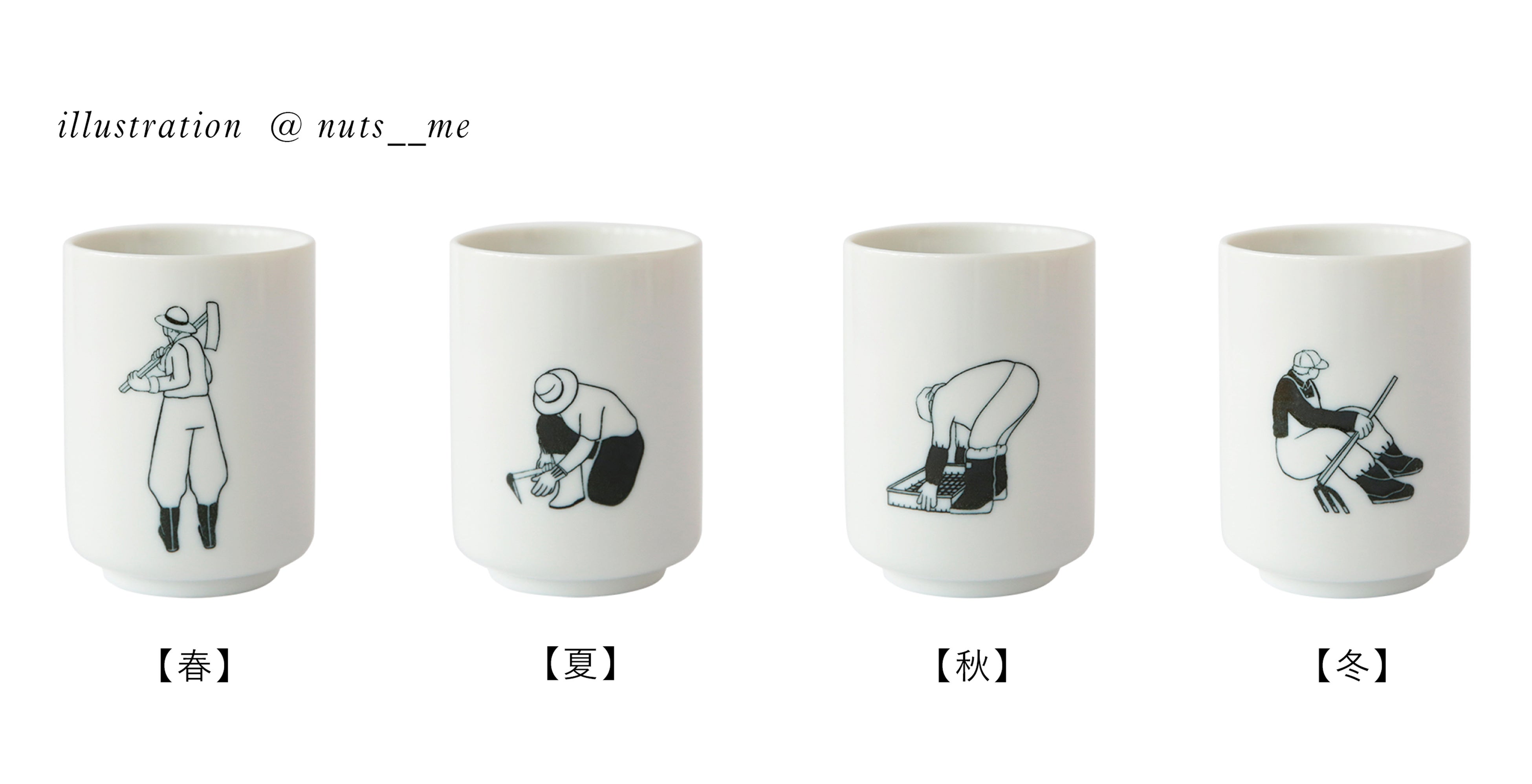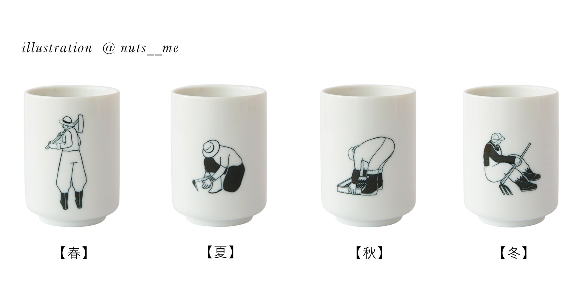 イラストレーターのたかなつめさん、勝山八千代さん、Rinoさんに湯呑に似合うイラストレーションを制作していただきました。それぞれのイラストのコンセプトを紹介していきながら、湯呑をお茶の間に取り戻すために。これからも新しい図案を提案していきます。