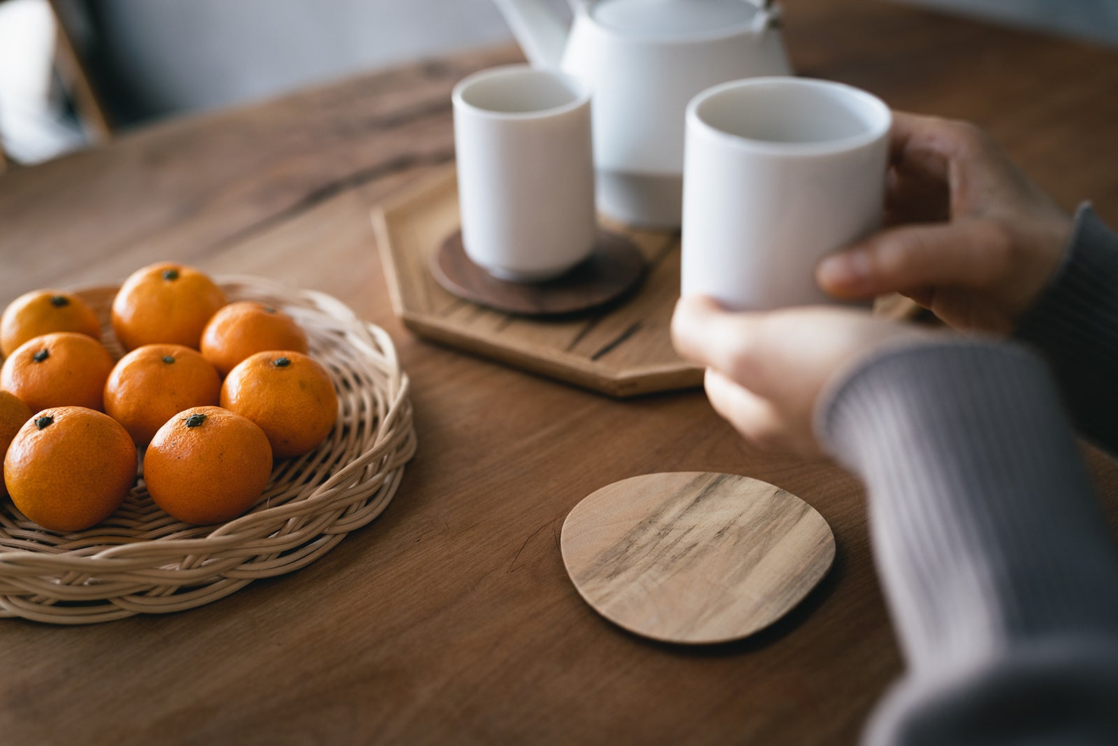 湯呑のお茶は熱々で、それで手を温めながら、冷めてきたらいただく。そのひとときが至福ではないかと思います。イラストレーター・たかなつめさんのイラストで、コタツやみかんに合う湯呑をつくりました。