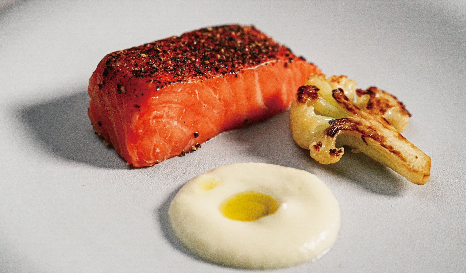 サーモンのミキュイ 旬のカリフラワーのピューレ添え