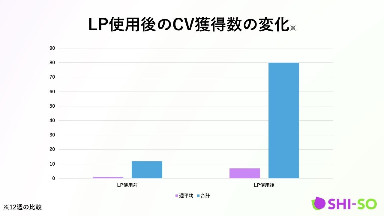 LPの使用によりBtoBアプリの特定のキーワードによる流入で、クリック数とクリック率は変わらずCV数が約7倍になった実例もございます。