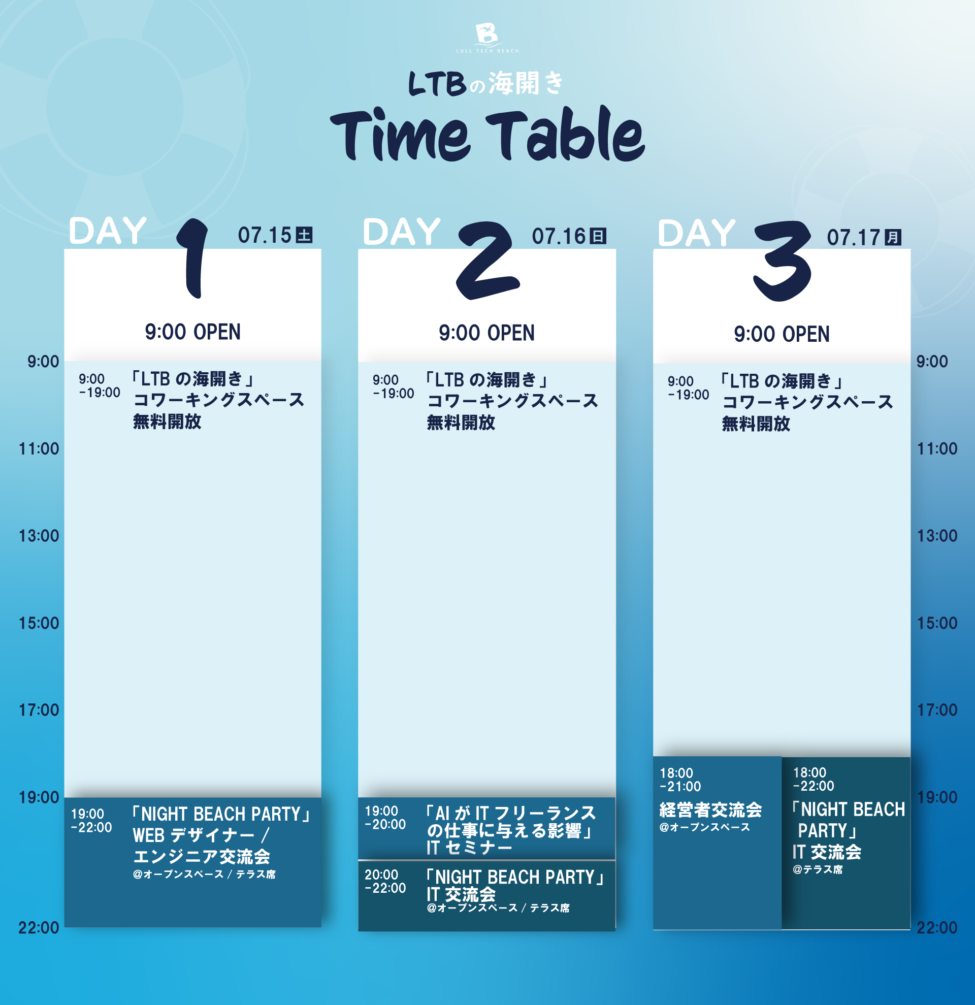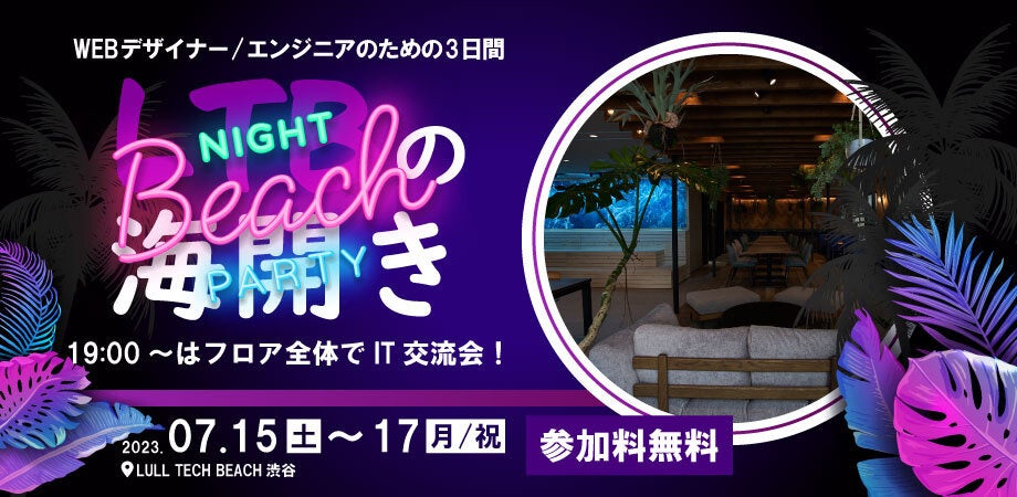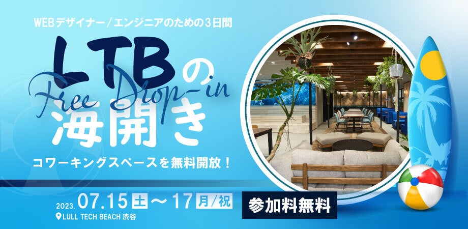 渋谷のコワーキングスペースが無料で使える3日間!“人も仕事も集まるビーチ”をテーマにしたコワーキングスペースLULL TECH BEACHが海の日の3連休に無料開放&IT交流イベントを開催!