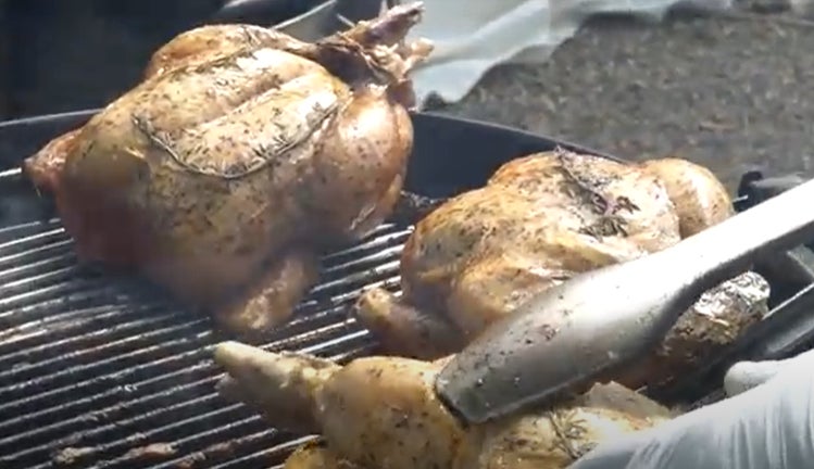 食材は専用の網にどーんと載せたり、チエーンに引っかけて吊るしたり、串刺しにしたりするだけ。あとはじっくりと焼き加減を見ながら焼き上げます。