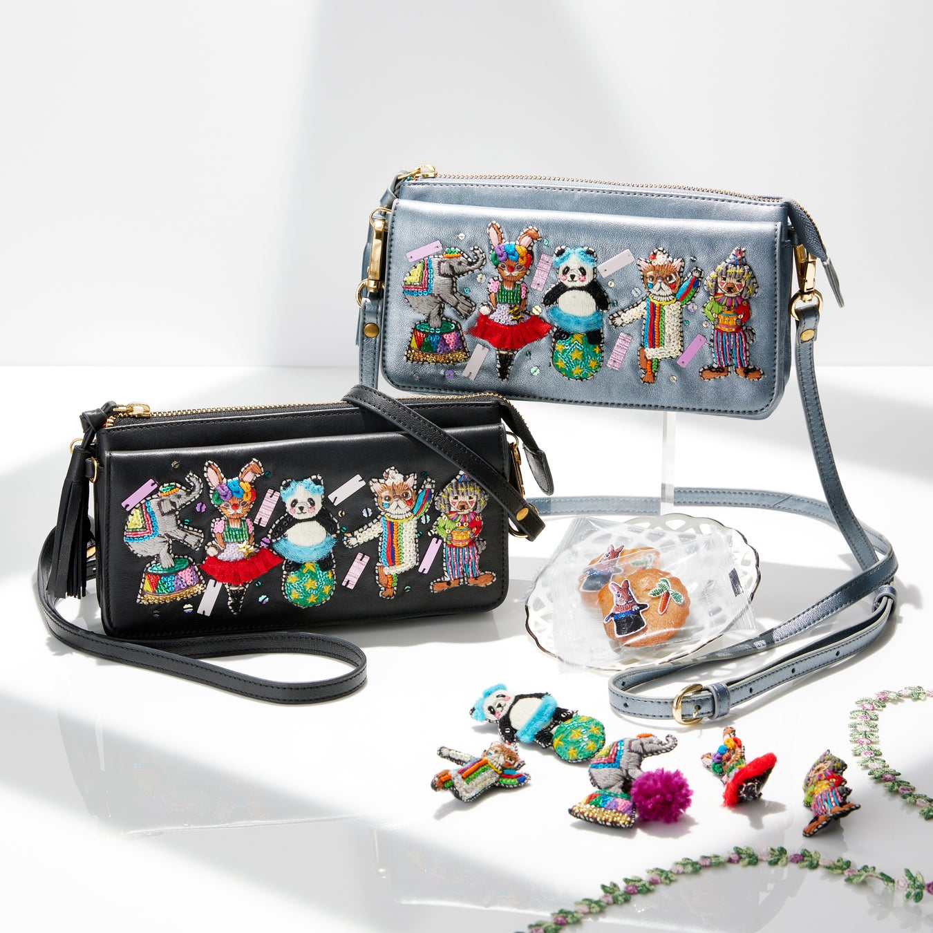 そのお菓子缶のモチーフとなった動物たちの「刺繍ポーチ」や「刺繍ブローチ」「刺繍ピアス/イヤリング」「お財布ポシェット」を数量限定販売します。