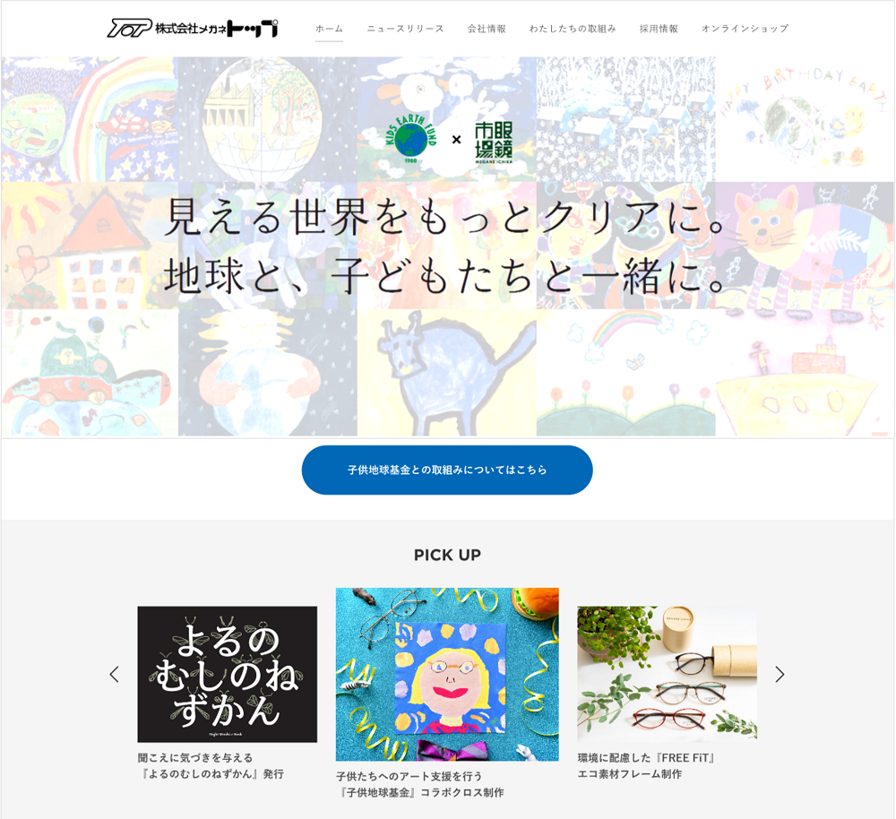 株式会社メガネトップのコーポレートサイトは2018年10月に全面リニューアルを行い、会社情報をはじめ「わたしたちの取り組み」ページといった、取り組みや活動内容の発信を積極的に行っています。