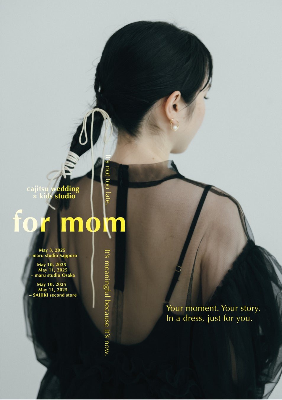 そんなママたちの声に寄り添いながら、cajitsu weddingは2023年より“ママが主役”のウェディングフォト企画「for mom」をスタートしました。