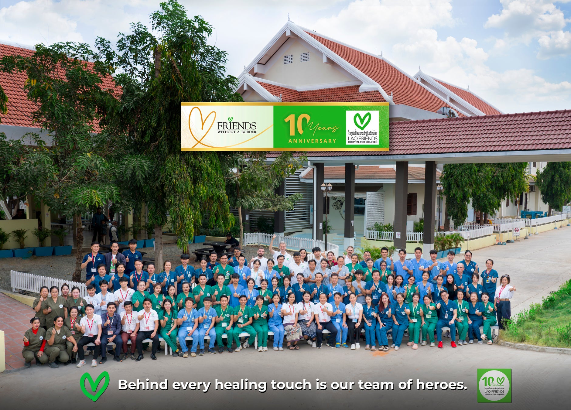 カンボジアでのプロジェクト達成後は、主な活動拠点をラオスのルアンパバーンに移し、2015年にラオ・フレンズ小児病院(LFHC)を設立・開院。開院初日には20人にも満たなかった患者数は、年間のべ4万人を超えるまでに成長しました。開院10周年を迎えた今、総務部長、医療部長、医療教育部長、看護部長の役職者をラオス人が担い、31名のマネージャーも誕生。現地化に向けて励んでいます。