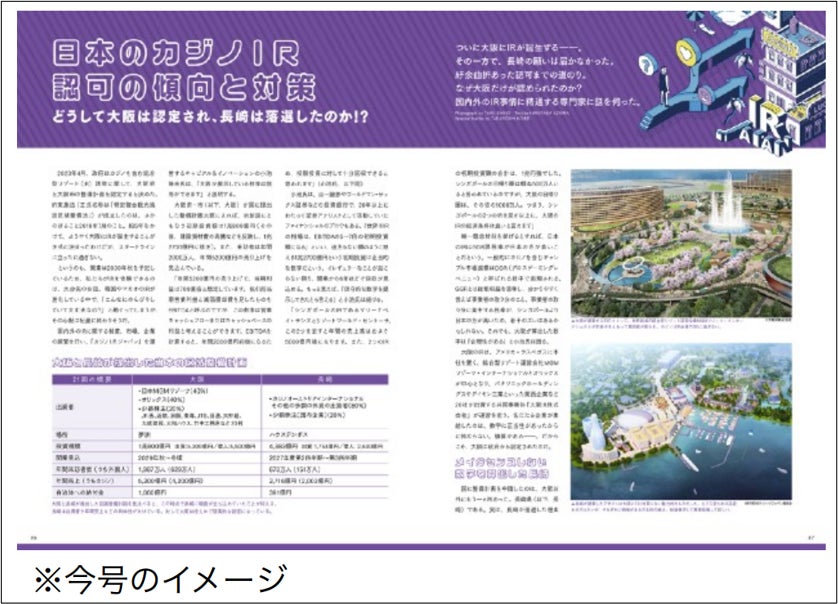 「CASINOjapan®」は、日本で唯一のカジノIR専門メディアです(※1)。専門誌として雑誌出版を行い、かつWEBメディアでも展開しています。WEBメディアでは、雑誌に掲載している情報の一部を紹介するだけにとどまらず、WEB版独自のコンテンツも掲載中です。出版雑誌と合わせて、より充実した内容を発信してまいります。