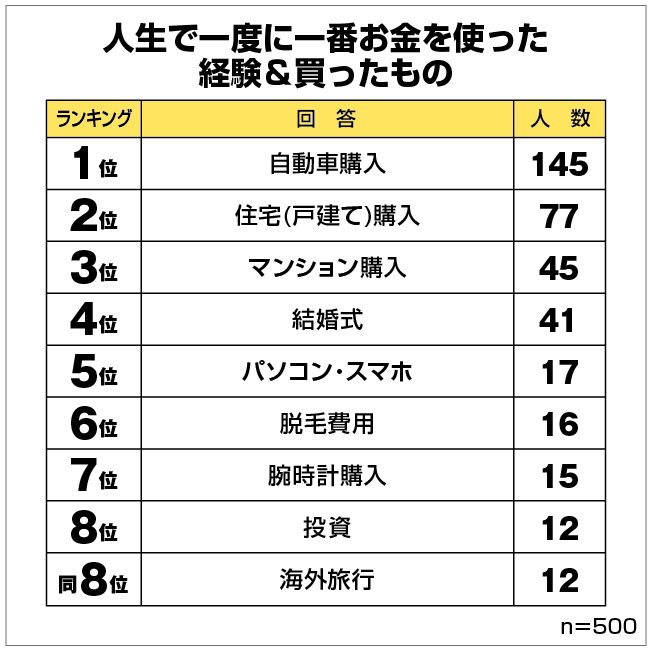 人生で一番高価な買い物や経験、いくらした?男女500人から高額&オモシロ回答続出!