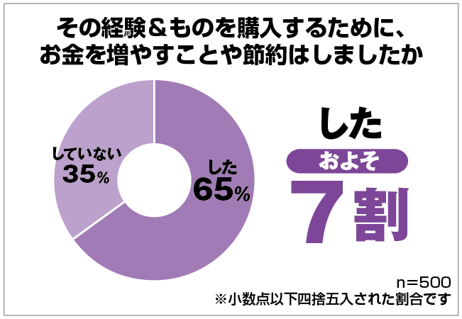 その物を購入するためにお金を節約したり、増やす工夫をしたりしましたか?という問いに対しては、65%の人が「した」と答えています。