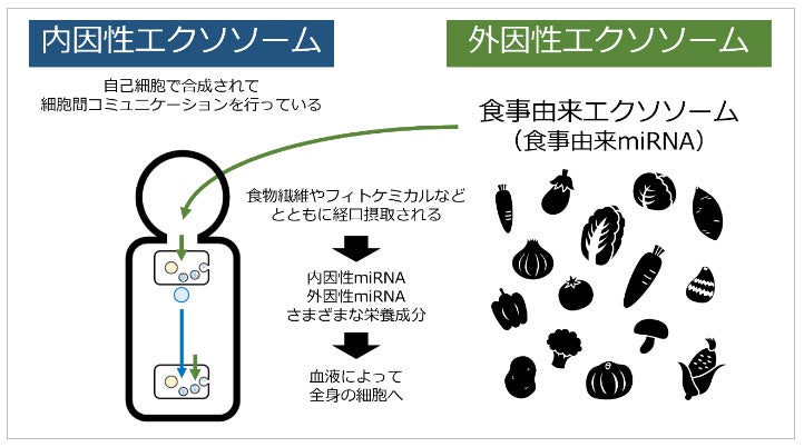 miRNA送達ナノ粒子「エクソソーム」分析により国産野菜パウダー「飲む粉野菜」から検出。「食事由来エクソソーム(食事由来miRNA)」の補給による健康管理に期待