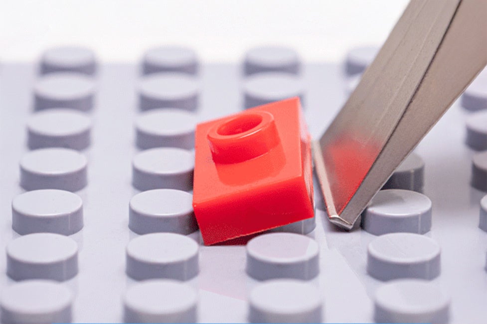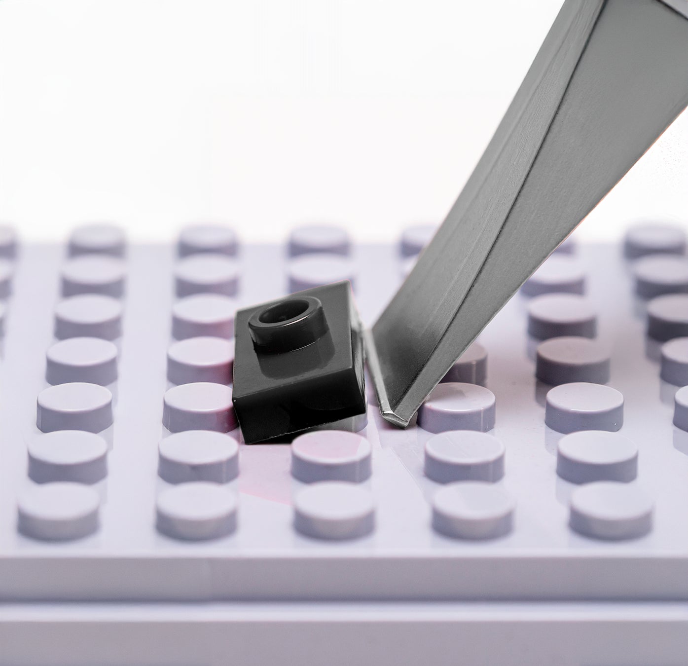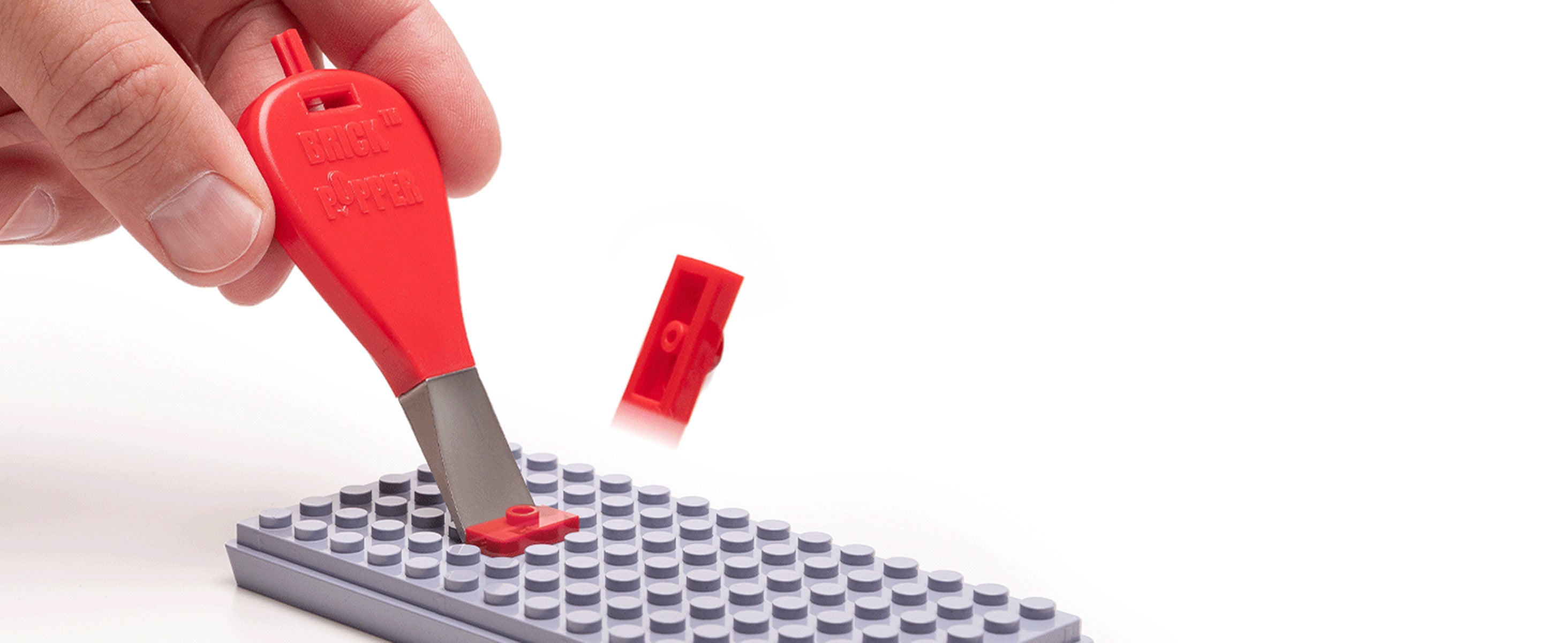 ブリックポッパーは、精密なエッジ加工を施した先端によってブロックのすき間にスッと入り込み、テコの原理で軽い力でも外せるよう設計されています。大人はもちろん、子どもも安心して使うことができます。