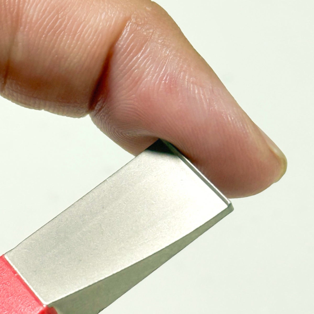 精密なエッジ加工を施した先端が、ブロックのすき間に入り込み、軽い力で外せてブロックを傷つけにくい