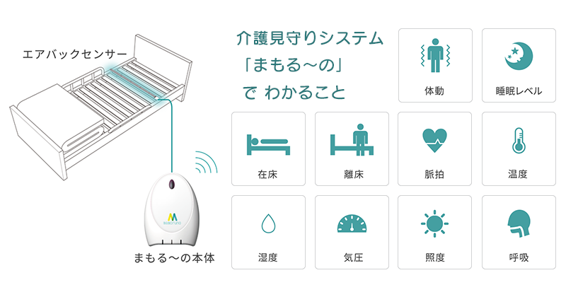 | 使用ICT機器 | ・ベッド上の脈拍・呼吸・体動・離床の情報 ・室温、湿度、照度を把握 ・スマートフォンで複数の居室状況を管理 |