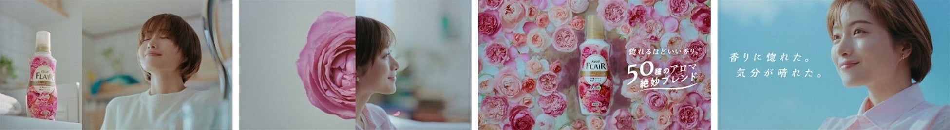 また、「ハミング フレア 贅沢アロマエッセンス」のCMは、初めて体験する“贅沢な香りの変化”に心の底から驚いている石原さんのリアルな表情が必見のCMとなっています。石原さんが “香りを感じる瞬間”にぜひご注目ください。