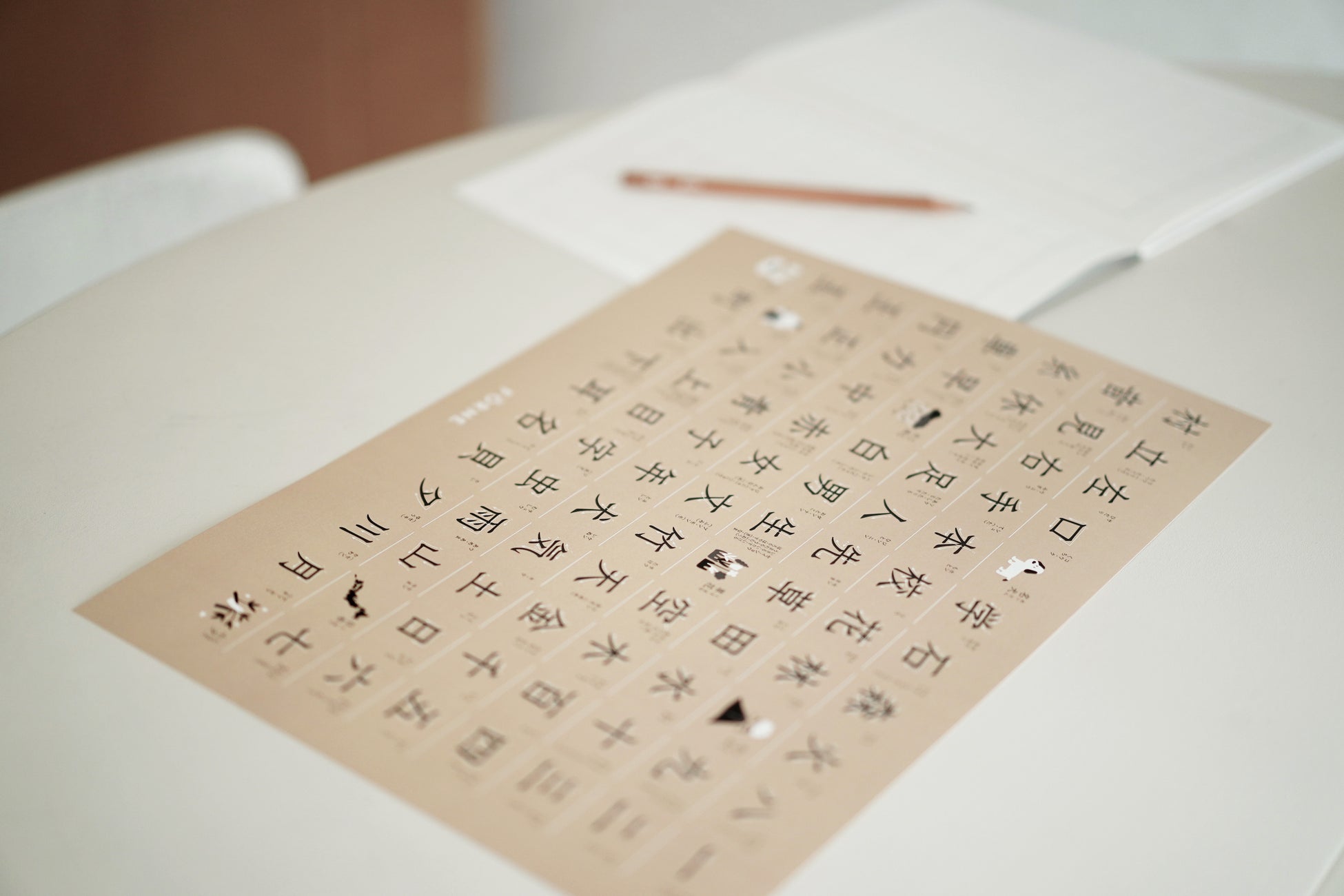 漢字の書体は、とめ・はね・はらいが分かりやすい楷書体です。カラーはフォルネの知育ポスターシリーズで人気のベージュ系。文字色はブラックで、視認性の高い配色に仕上げました。