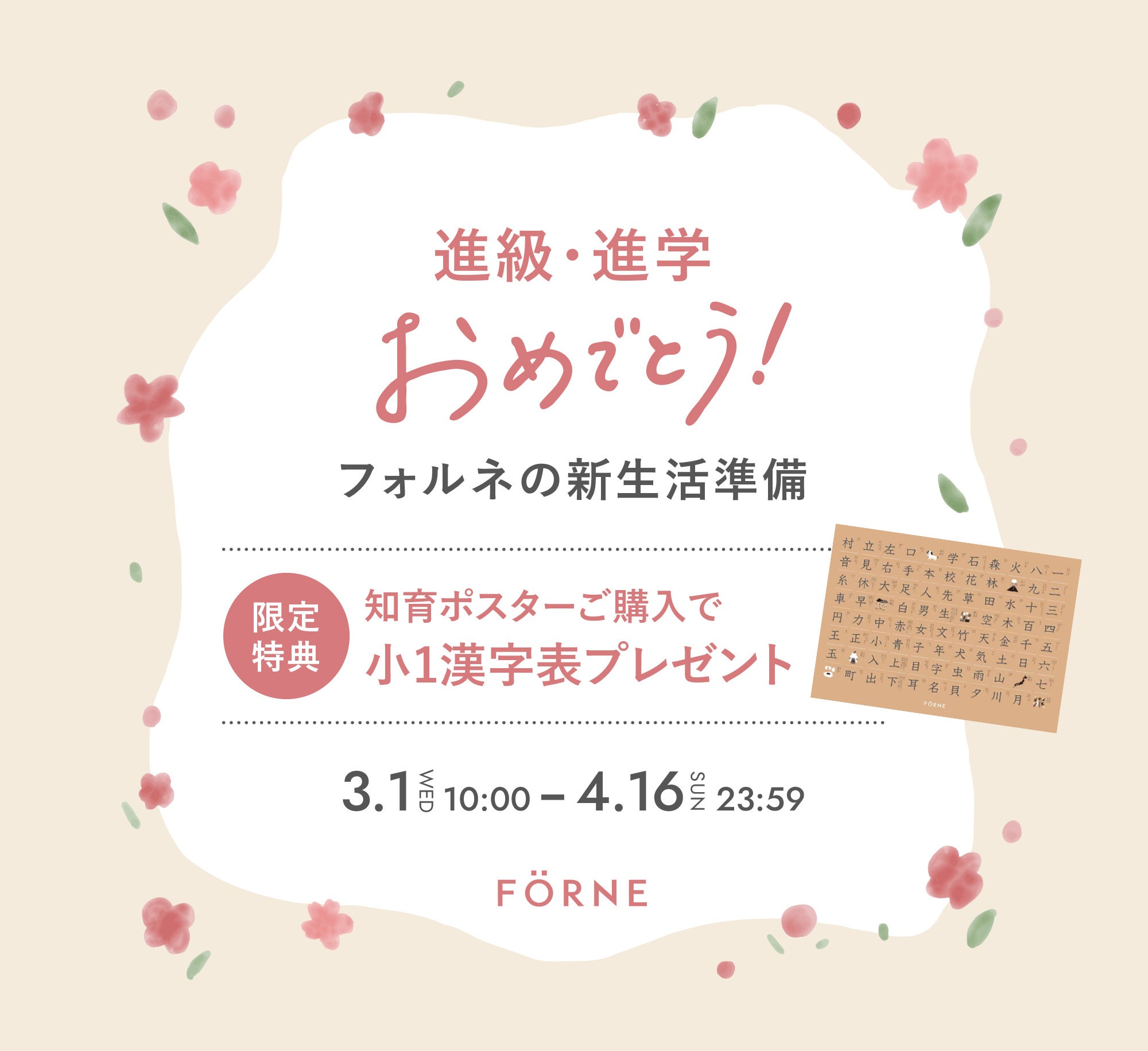 オリジナルの漢字表をプレゼント!「進級・進学おめでとう!フォルネの新生活準備」