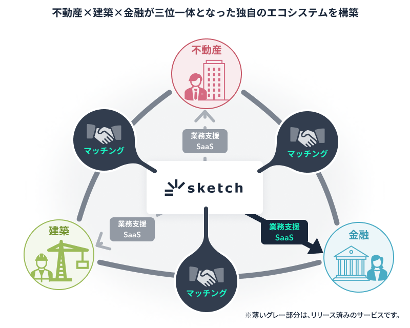 「sketch」は今後、開発用地の仕入・企画・建築・販売までを、デジタル空間上で完結させることで、不動産のなめらかな流通を実現してまいります。