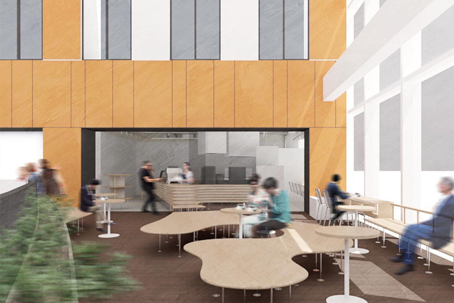 BERTH COFFEEみなとみらいが開業する「リーフみなとみらい」は、みなとみらい駅より徒歩3分の場所に位置する高層複合ビルです。1〜3階は商業施設エリアとなっており、2階部分のテナントとなるBERTH COFFEEみなとみらいは、約75平米の店舗部分に施設内の共用テラスが接続しています。共用部分を含めて考案された内装デザインは店舗と店舗外をシームレスに繋ぎ、自由に行き来することが可能です。また、共用テラスはビル内におけるアトリウム空間の一部となっており、高さ4mほどの大きな窓と一階からの吹き抜けに囲まれた環境で、十分な余白を感じながらゆったりと過ごすことが可能です。