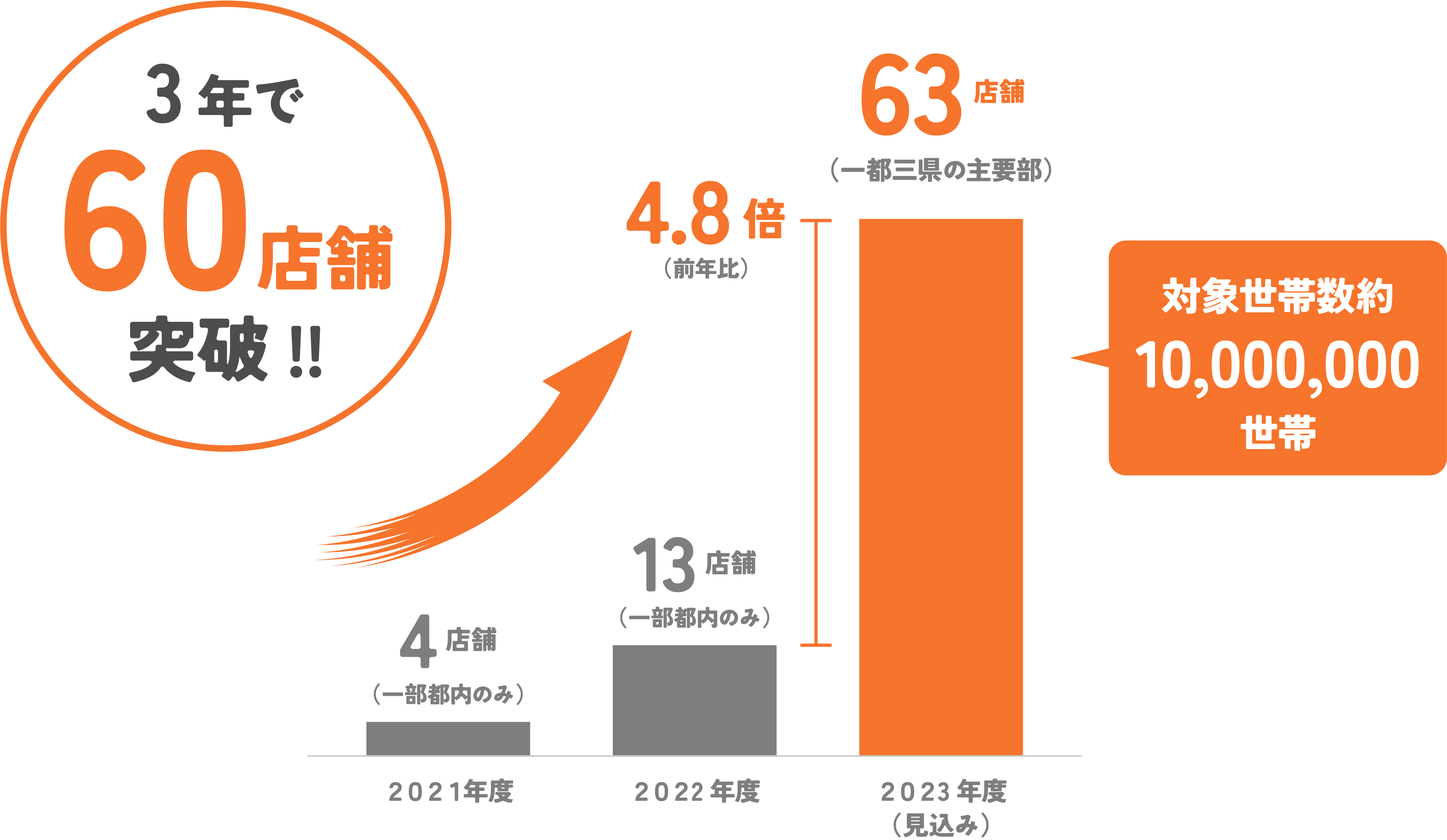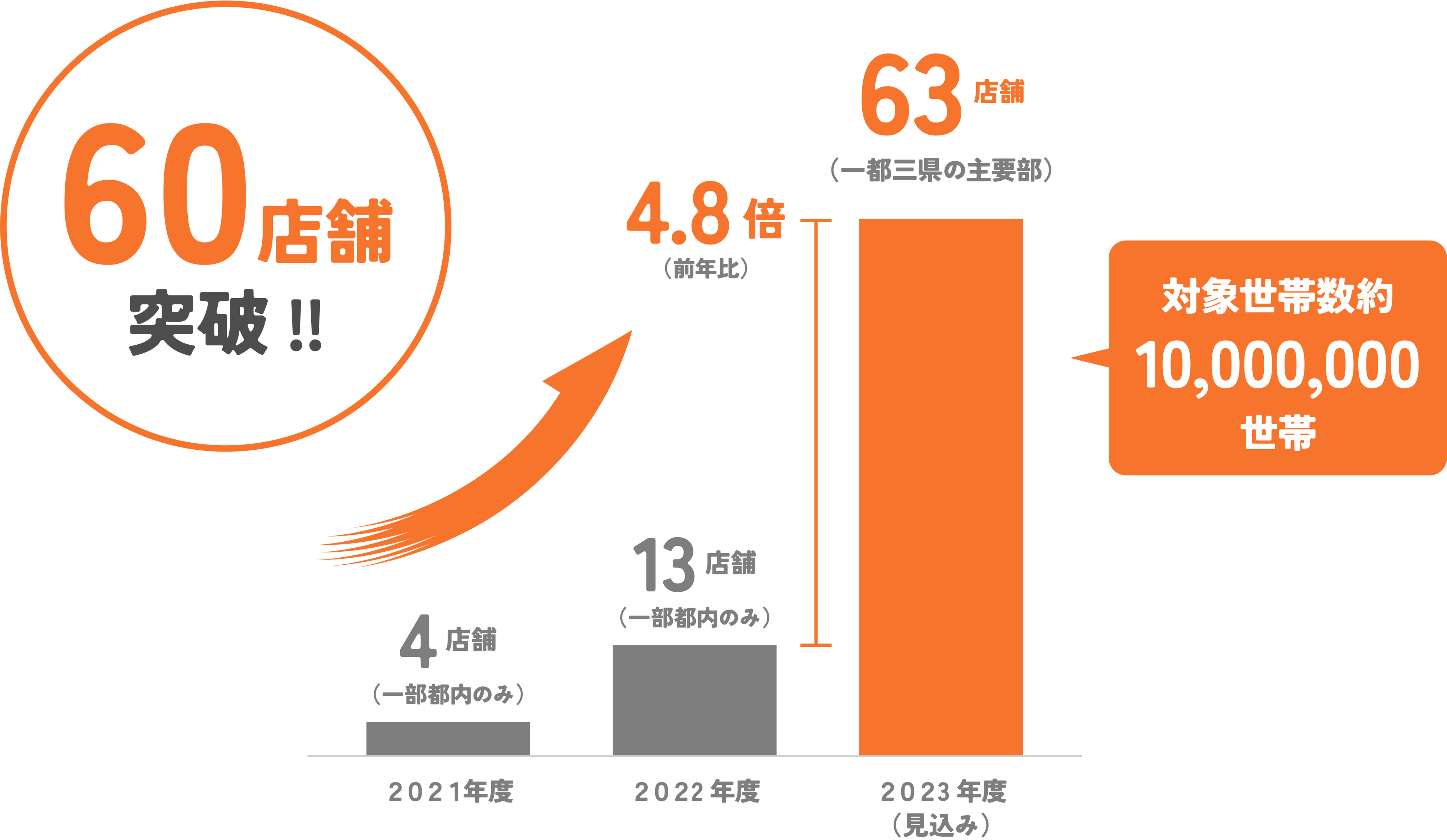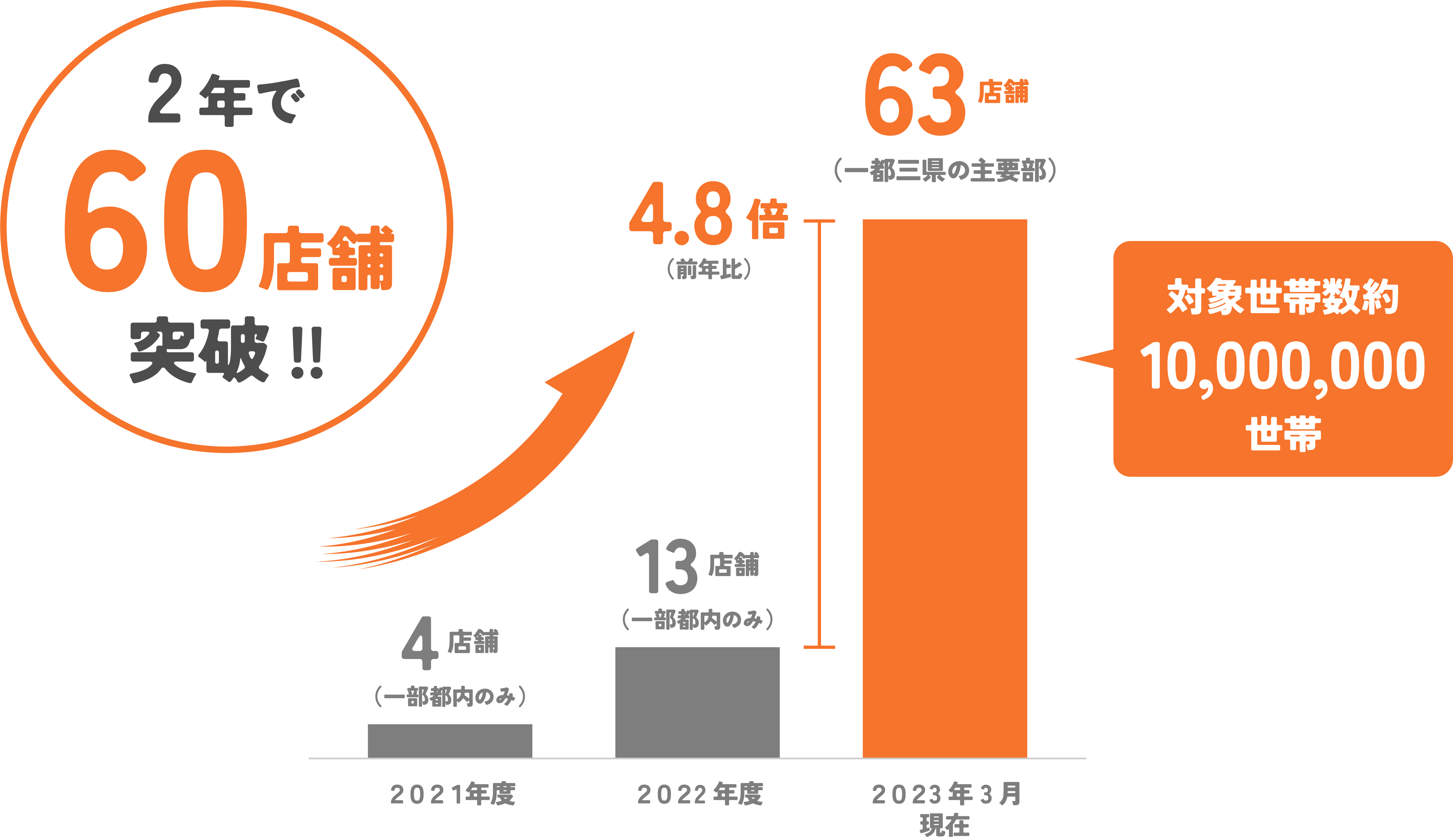 宅配スーパーOniGOがカバーエリアを大幅に拡大し、一都三県を中心に63拠点(2023年3月現在)となりました。これからもパートナー企業様と共に、よりよいお買い物体験の実現に向けて全力を尽くし、圧倒的スピードでプロダクト開発、事業開発を進めて参ります。
