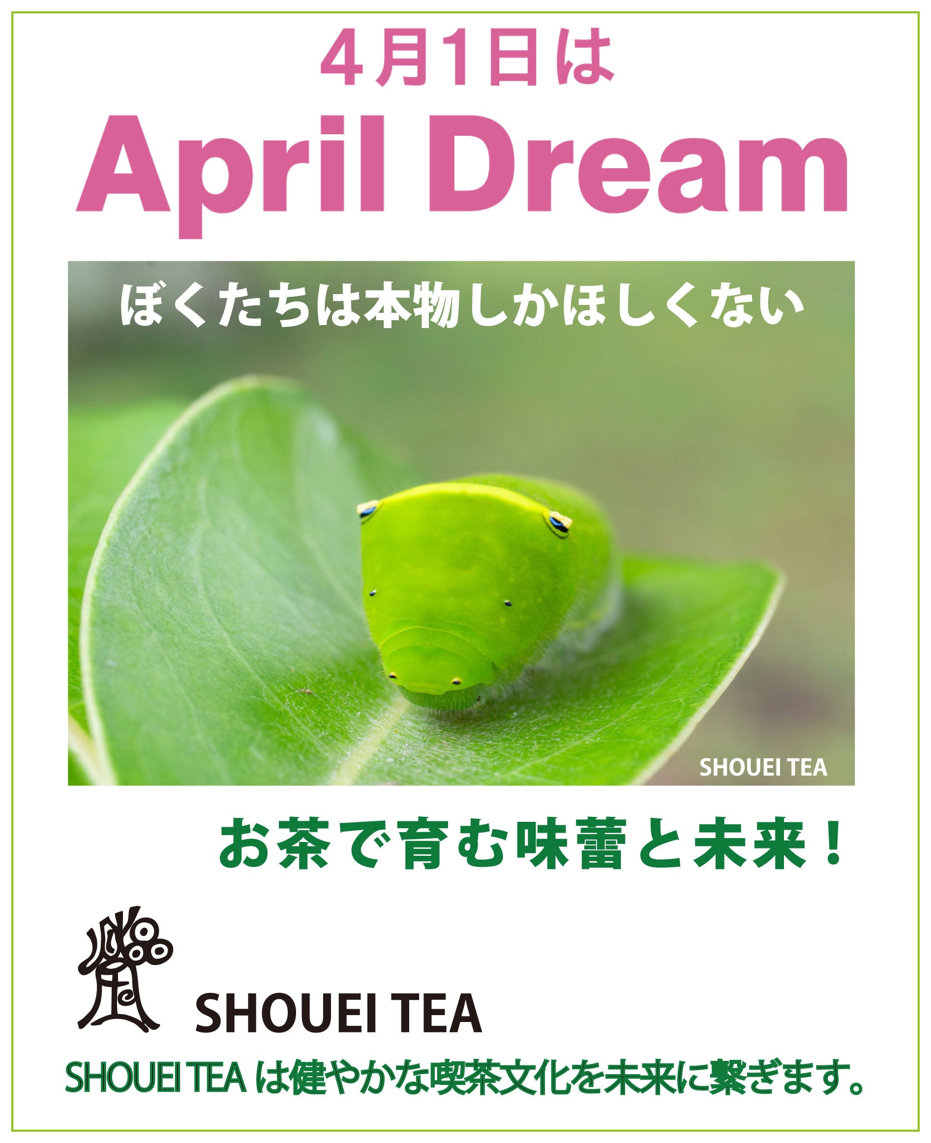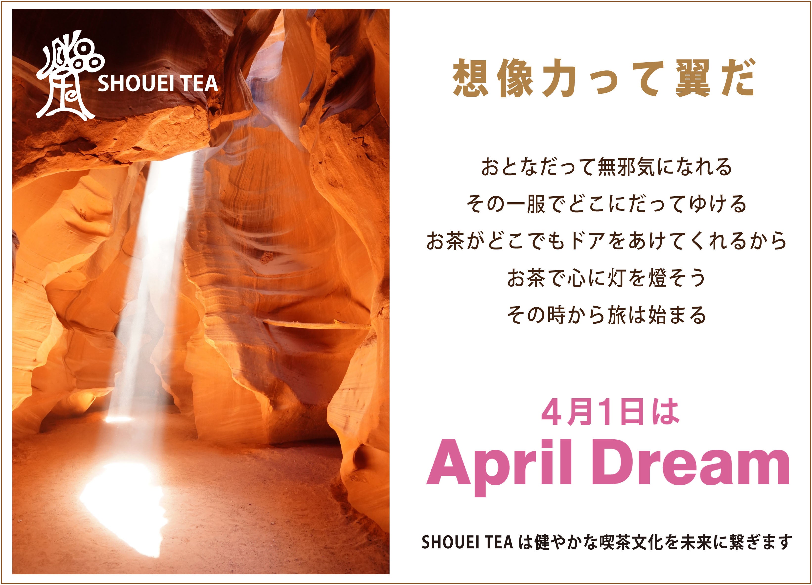 SHOUEI TEAはお茶で想像力を刺激する企業になります。当社は、4月1日を夢を発信する日にしようとするApril Dreamに賛同しています。このプレスリリースは「株式会社晶瑩」の夢です。