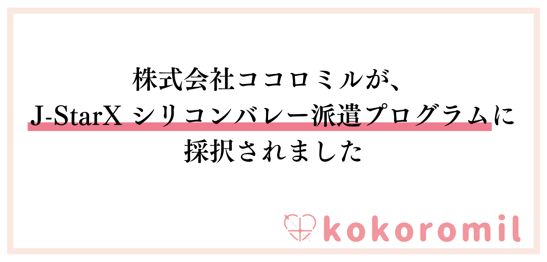 株式会社ココロミルが、J-StarX シリコンバレー派遣プログラムに採択されました
