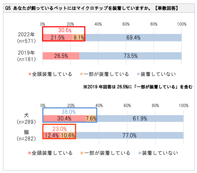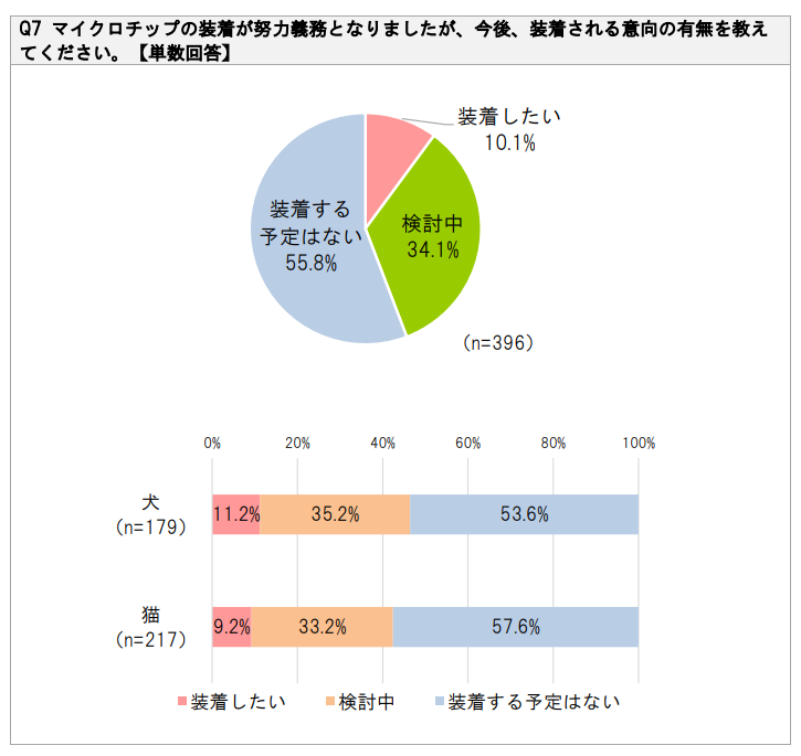 犬・猫のマイクロチップ装着が販売業者は義務化、一般飼育者は努力義務に~動物愛護の意識が高まる中、マイクロチップの装着は約3割~
