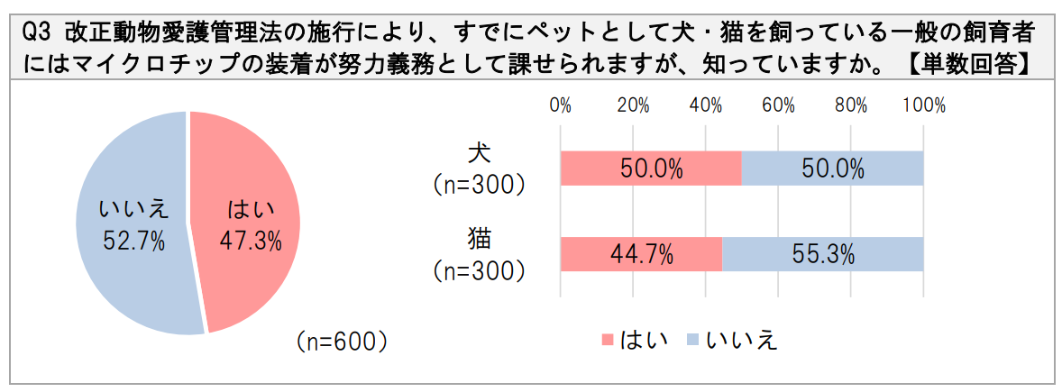 ●一般飼育者へのマイクロチップ装着努力義務の認知率は47.3%