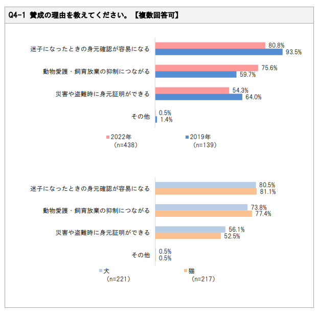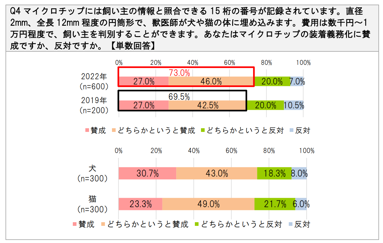 マイクロチップ装着義務化への賛成は73.0%(2019年と比べて3.5ポイント増加)