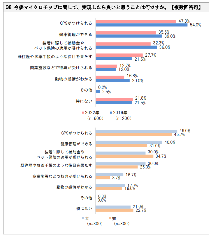 マイクロチップで実現したら良いと思うもの第1位は「GPSがつけられる」47.3%