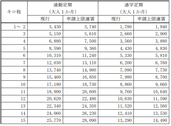 鉄道事業の旅客運賃については、「鉄道事業法」に基づき、鉄道事業者の「上限運賃」を国土交通省が認可する「上限認可制」となっています。鉄道事業者は認可された上限運賃の範囲内で「実施運賃」(お客さまから実際に収受する運賃)を設定することができます。当社鉄道線の現行の「実施運賃」は「上限運賃」と同額であり、認可後についても同様に設定をする予定です。詳細は、国土交通省関東運輸局長の認可を受けた時点であらためてお知らせいたします。