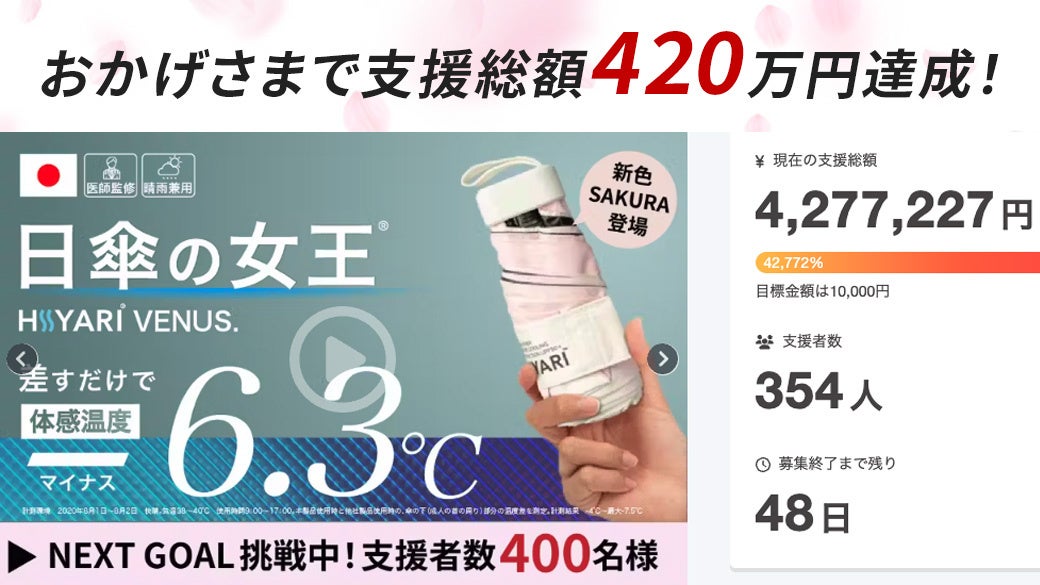 「HIYARI ヴィーナス」は、株式会社CAMPFIREが運営する、クラウドファンディングサイト「CAMPFIRE」にて2025年4月19日(土)10時より予約販売を開始いたしました。支援者400名様のネクストゴールに挑戦中!