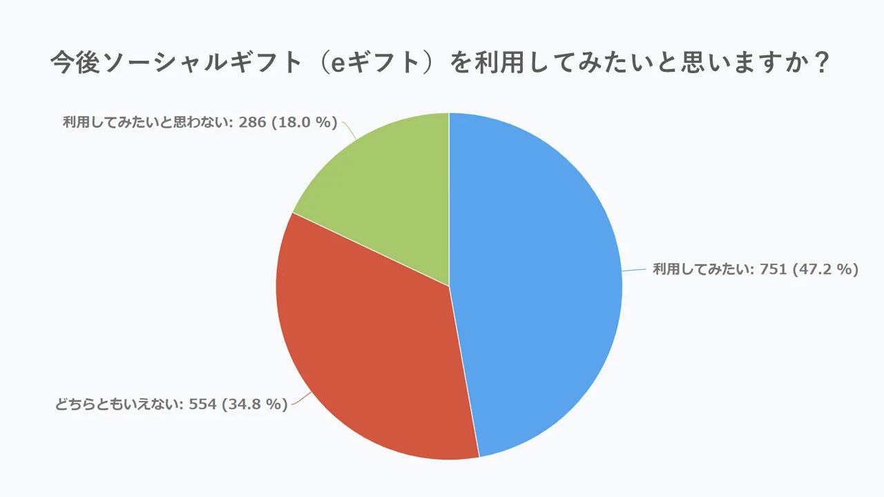「今後ソーシャルギフト(eギフト)を利用してみたいと思いますか?」の質問に対しての回答内訳は以下の通りとなりました。