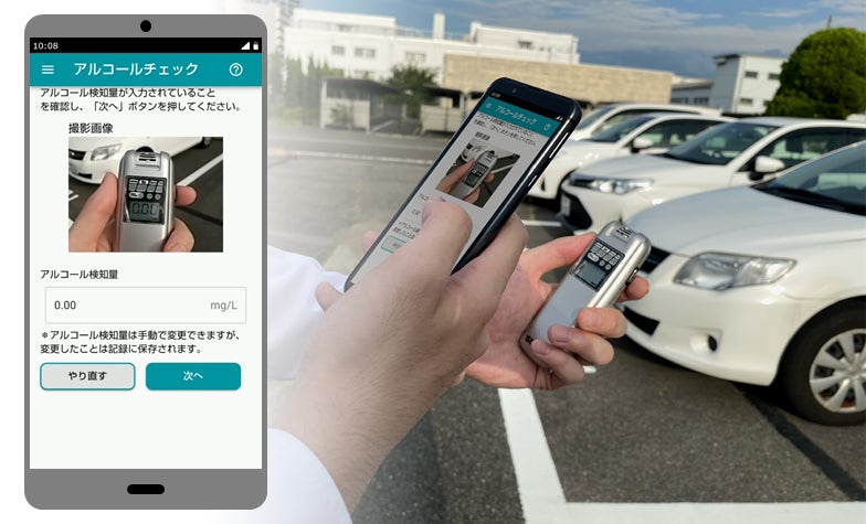 当社が提供するアルコールチェック管理サービス『スリーゼロ』は、市販のアルコール検知器で、運転者の酒気帯びの有無をチェックし、スマートフォンアプリ経由で検査結果をクラウドに送信・保管できるサービスです。既に導入しているアルコール検知器を含め、さまざまなアルコール検知器を利用できることからお客様からも好評を得ております。