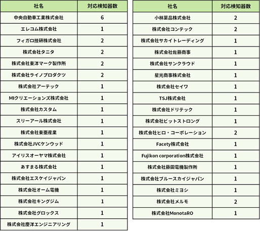 本年4月7日に正式サービスを開始後、約6カ月にて各社より発売されているアルコール検知器の動作確認を随時実施し、37社50機種(9月末時点)のアルコール検知器に対応しております。