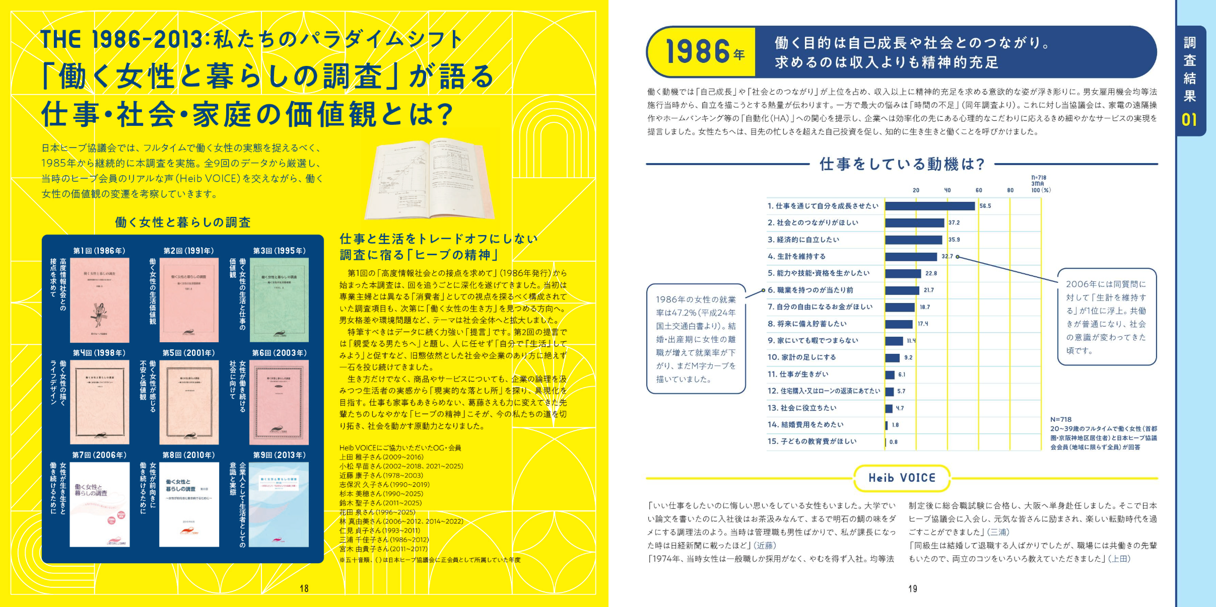 本冊子は、当協議会の48年間の活動を記録した膨大な資料や、会員やOG、関係者への取材を通して、働く女性の歴史を日本ヒーブ協議会という視点から考察するとともに、未来への思いをまとめました。