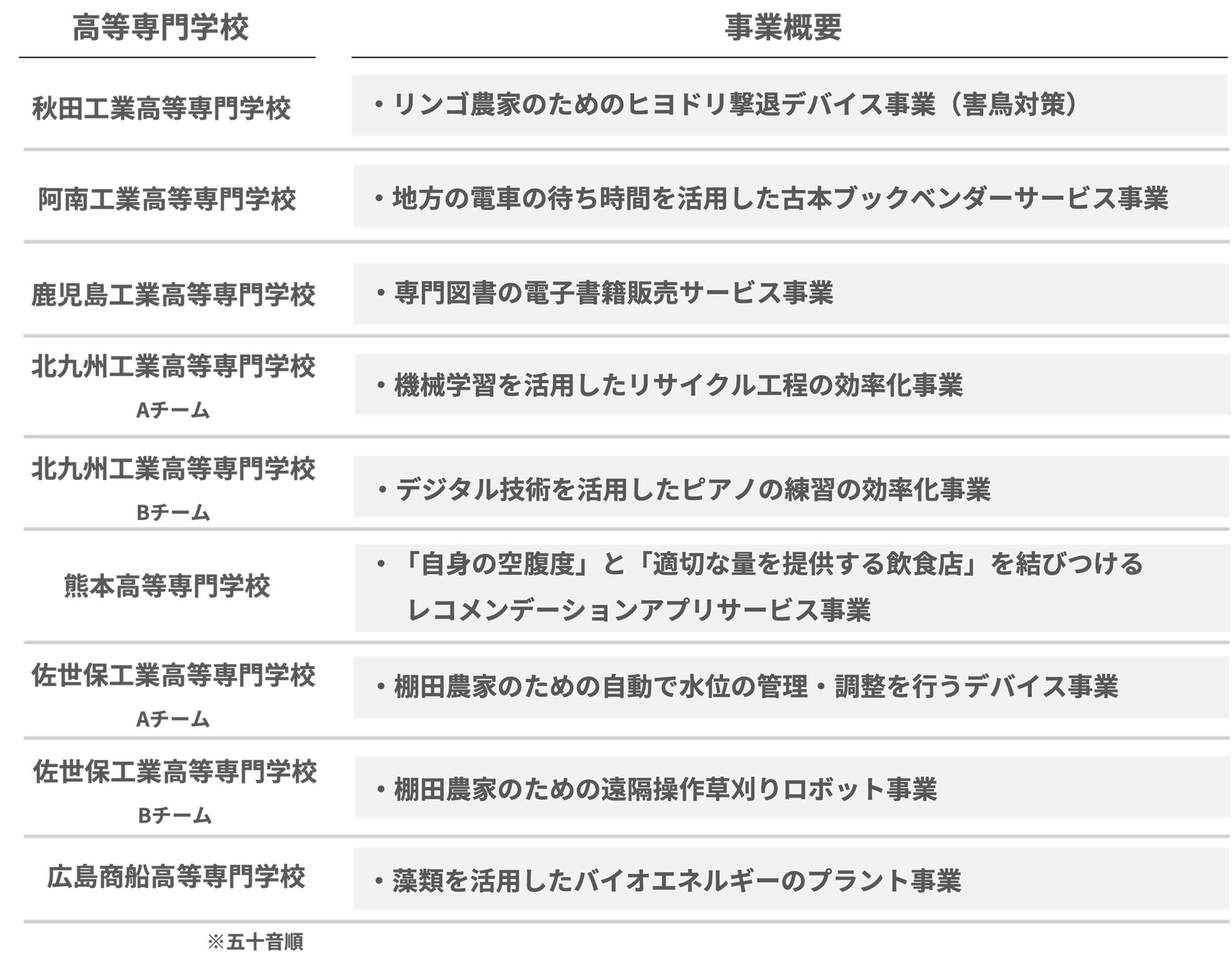 当社は、これからも当該営みを通じた高専学生のアントレプレナーシップの醸成を図り、スタートアップとしての起業人材や、大企業・有望ベンチャー企業における経営人財候補の輩出を目指してまいります。