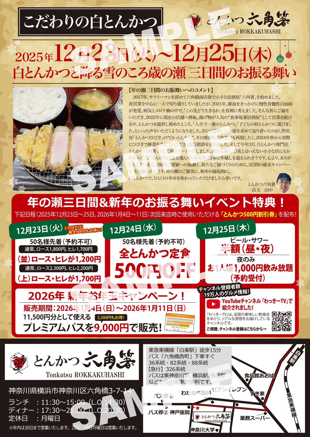 【横浜市 こだわりの白とんかつ専門店「とんかつ六角箸」】が期間限定でお客様還元イベント!2025年12月23日〜25日歳の瀬三日間のお振る舞いイベント&新年お年玉キャンペーンを開催!