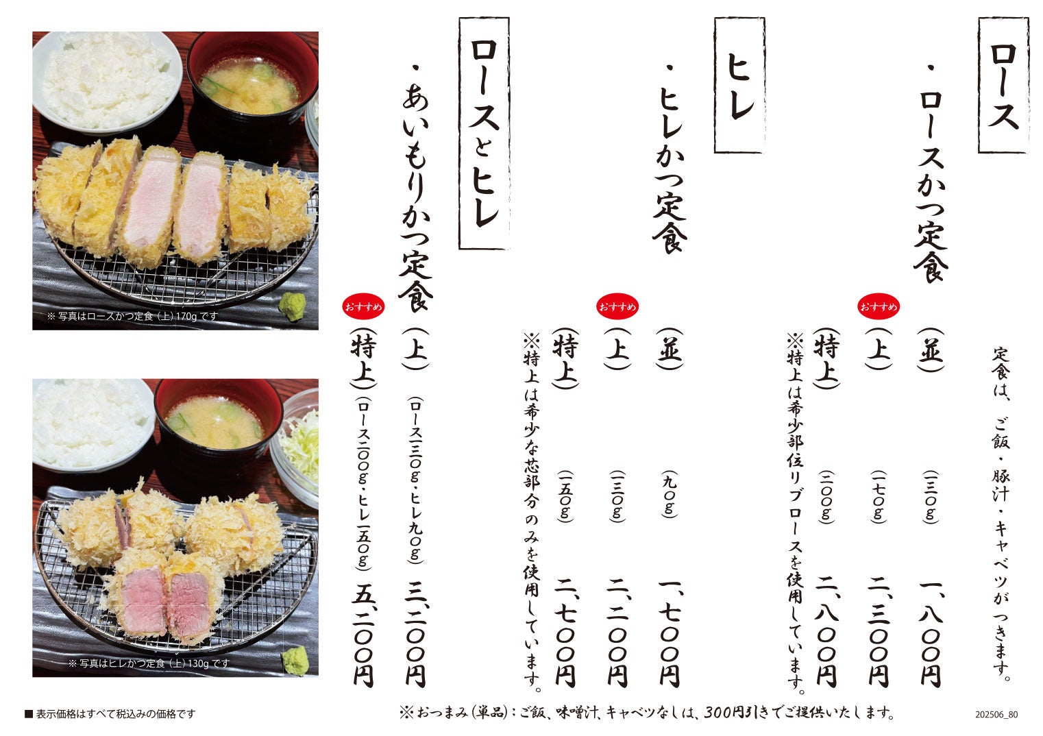・通常ロース1,800円、ヒレ1,700円が、(並)ロース・ヒレが1,200円