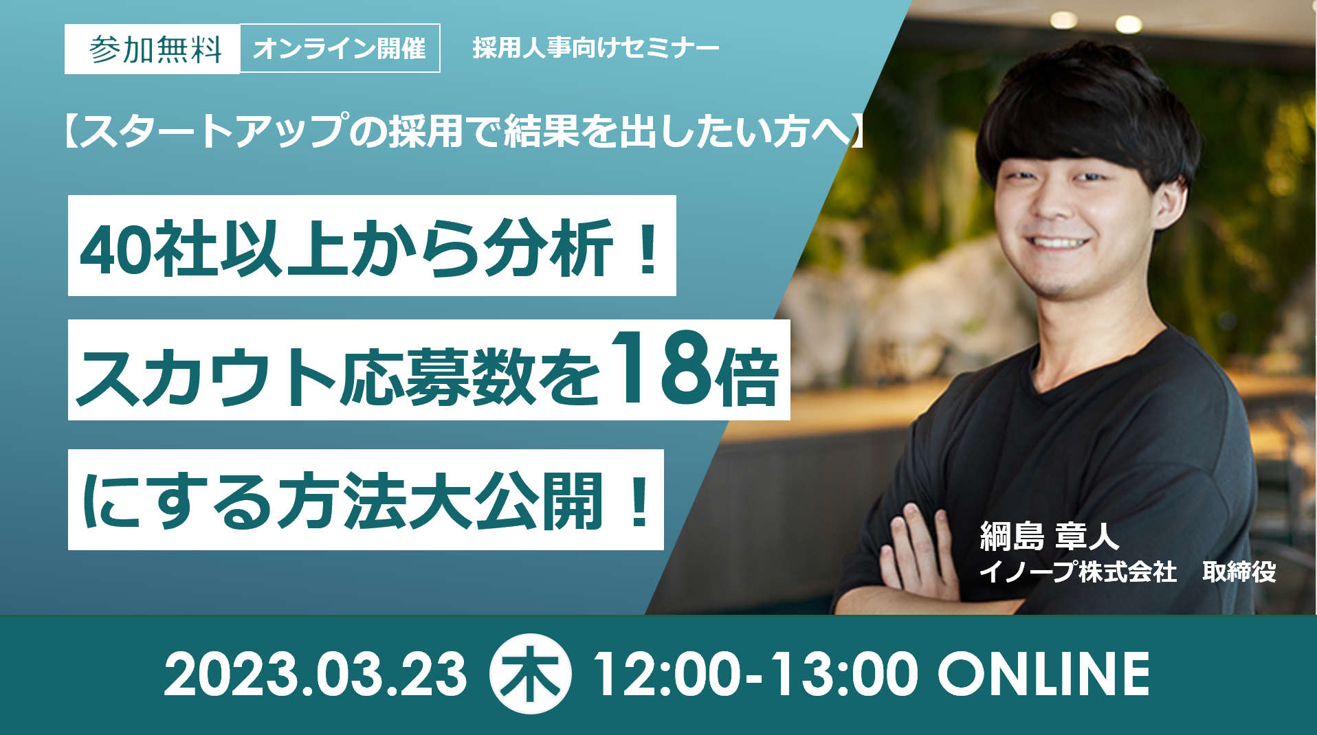 【スタートアップの採用で成果出したい方へ】40社以上から分析!スカウト応募数を18倍にする方法を公開する採用人事向けセミナー