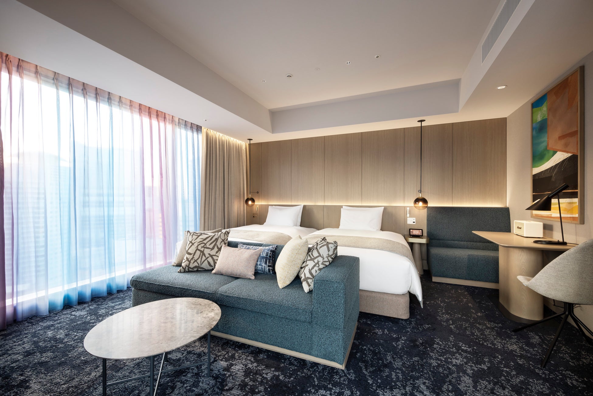 都市の中心にありながら、豊かな緑と静けさを感じられる癒しの空間を提供。客室は、落ち着きのあるアースカラーを基調とし、天井から床まで広がる大きな窓を採用。開放感あふれるデザインが、宿泊者に心地よい滞在をもたらします。