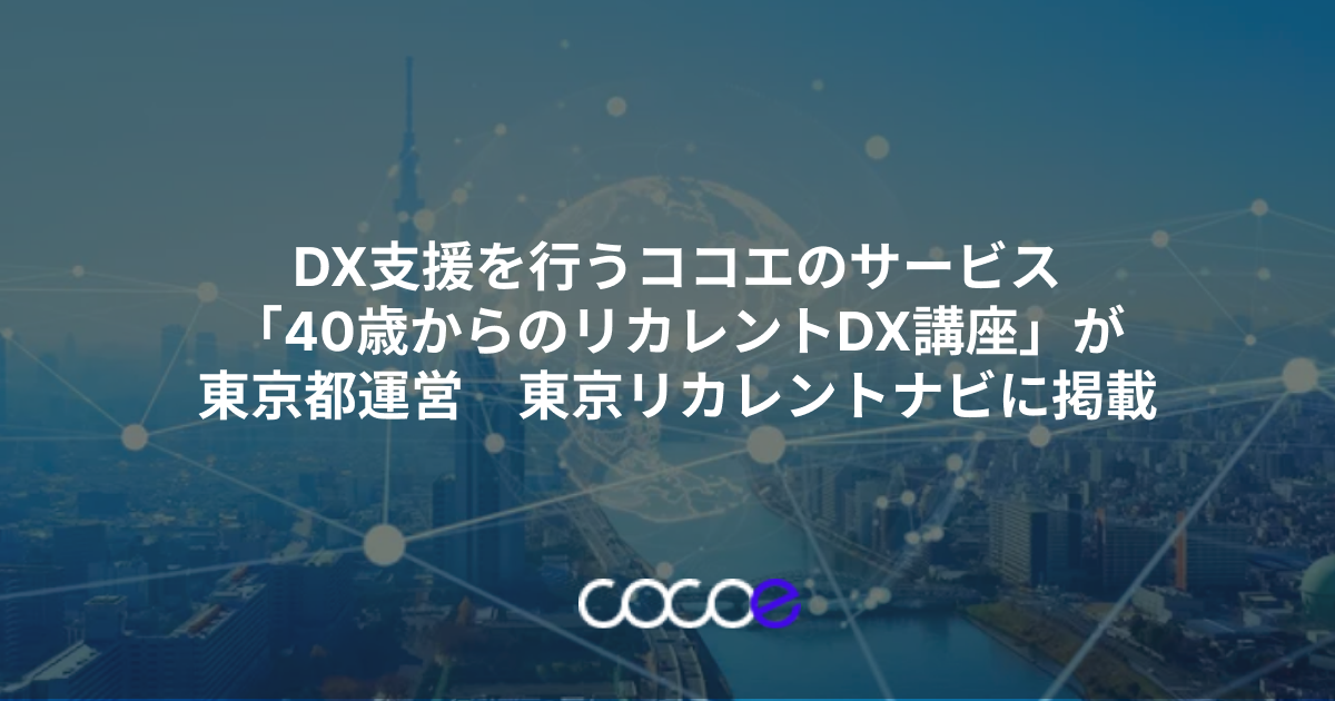 東京都運営の「東京リカレントナビ」が経済産業省「DXリテラシー標準」に準拠したココエの「40歳からのリカレントDX講座」を掲載開始