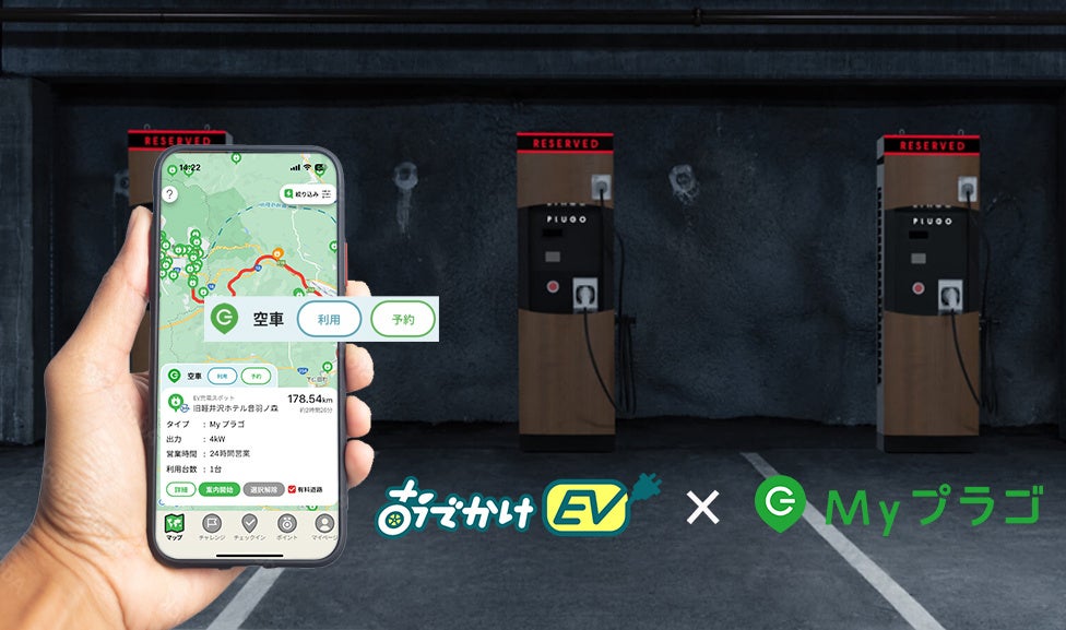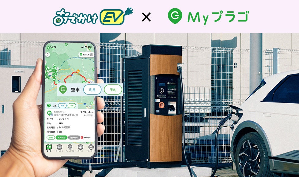 ~「おでかけEV」は、Myプラゴ充電スポットの最新情報や満空情報をリアルタイム表示し、そのまま予約も可能へ!EV充電スポット情報の精度向上で、おでかけをもっと楽しく~