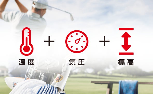 勾配計算(スロープ機能)に加えて、「気温・高度(気圧)」を加味した「打つべき推奨距離」を表示。