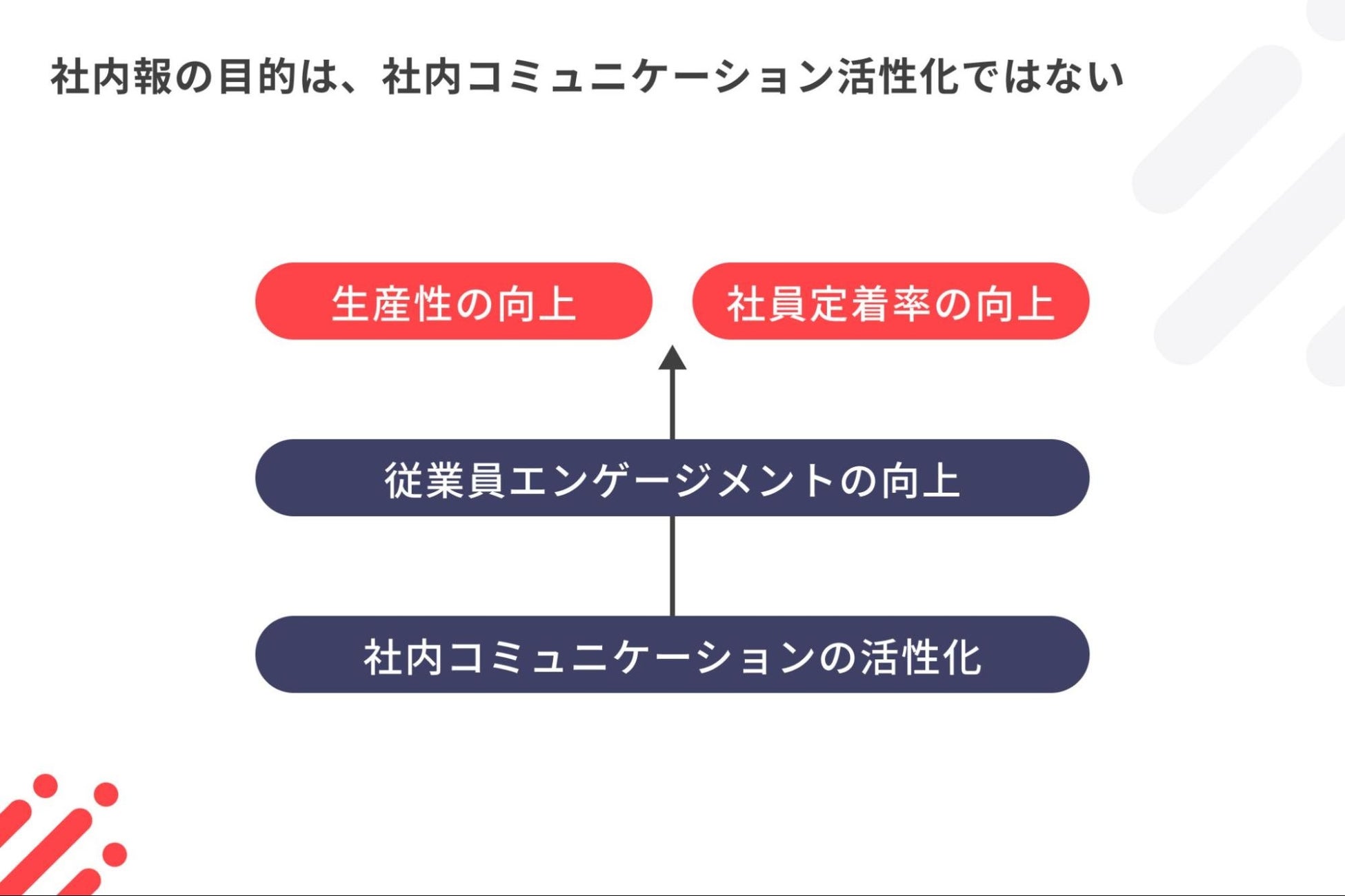 社内報を運用していくことで従業員エンゲージメントの向上を目指していくのですが、そのために考えるべき2つの目的について解説します。